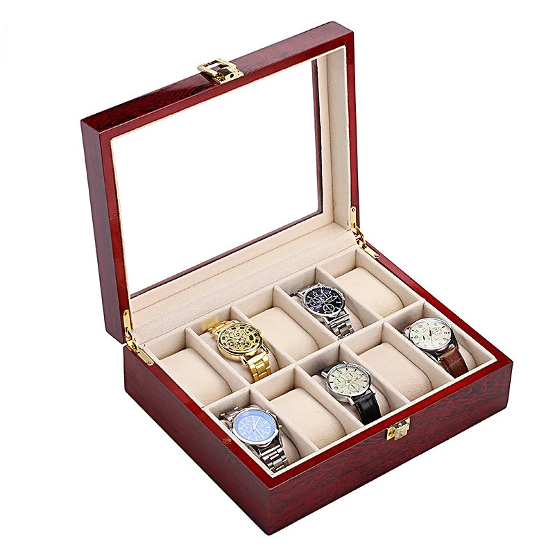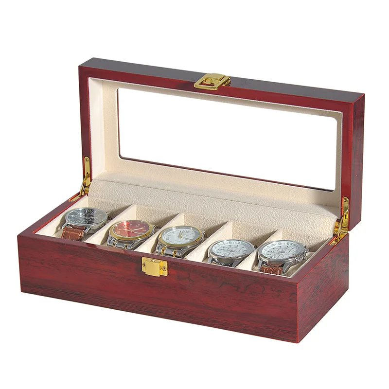 Luxury Wooden Clock Red Watch Box Jewelry Box Display Watch Case Holder Organizer for Watches Men Women Valentine's Best Gifts quantity